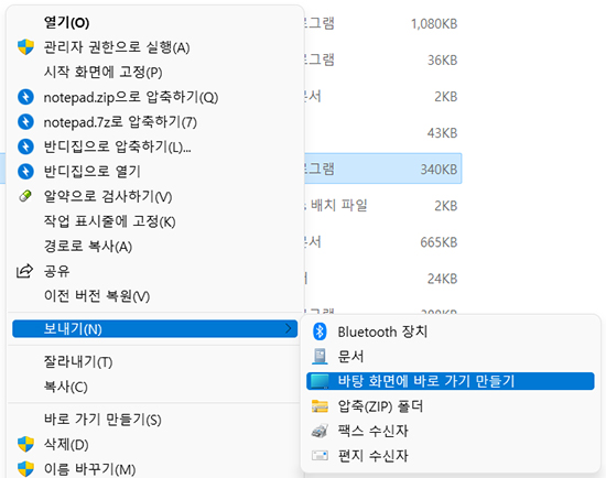 바탕화면에 메모장 바로가기 만드는 방법